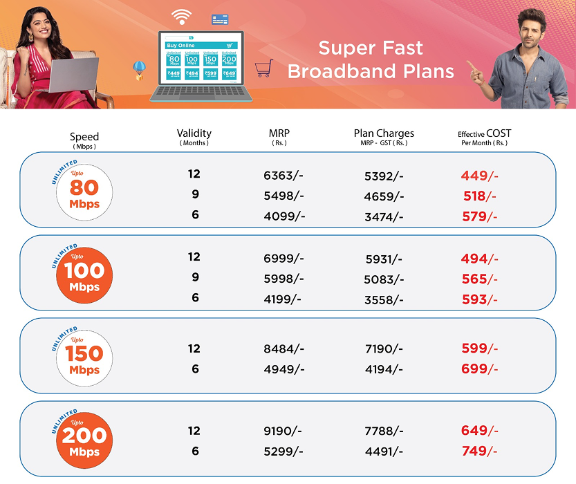 GBPL provides broadband and internet services under various plans, each with specific features,